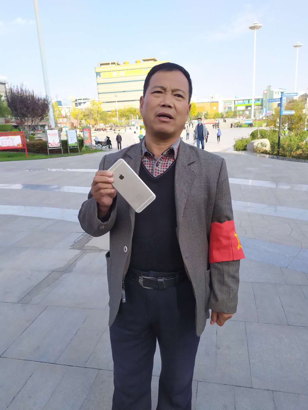 2020年10月31日下午2時(shí)30分左右,潔霸公司保安人員王紅廷師傅在人民廣場(chǎng)西門(mén)執(zhí)勤過(guò)程中,發(fā)現(xiàn)臺(tái)階上被人丟失的一部銀灰色的蘋(píng)果手機(jī),失主已經(jīng)離開(kāi),為防止手機(jī)被無(wú)關(guān)人員撿走,他趕忙將手機(jī)交至人民廣場(chǎng)辦公室進(jìn)行登記備案,并且想到失主一定焦急萬(wàn)分,隨后到西門(mén)等待失主回來(lái)找手機(jī),一個(gè)小時(shí)以后,一個(gè)面色匆匆的小姑娘來(lái)到了西門(mén)說(shuō)尋找丟失的手機(jī),王紅廷師傅把她領(lǐng)到廣場(chǎng)辦公室,讓她對(duì)自己丟失的手機(jī)進(jìn)行一個(gè)簡(jiǎn)單直觀的描述后,當(dāng)場(chǎng)和廣場(chǎng)辦公室人員一同確認(rèn)這個(gè)小姑娘就是手機(jī)的主人,面對(duì)丟而復(fù)得的手機(jī),小姑娘激動(dòng)地說(shuō),回來(lái)找只是僥幸心理,一直想的是手機(jī)應(yīng)該早被人拿走了,沒(méi)想到真的就找到了,無(wú)數(shù)次的真誠(chéng)地和王紅廷師傅說(shuō)著謝謝!王紅廷師傅用簡(jiǎn)樸的語(yǔ)言說(shuō),換了誰(shuí)都一樣,大家都會(huì)這么做!