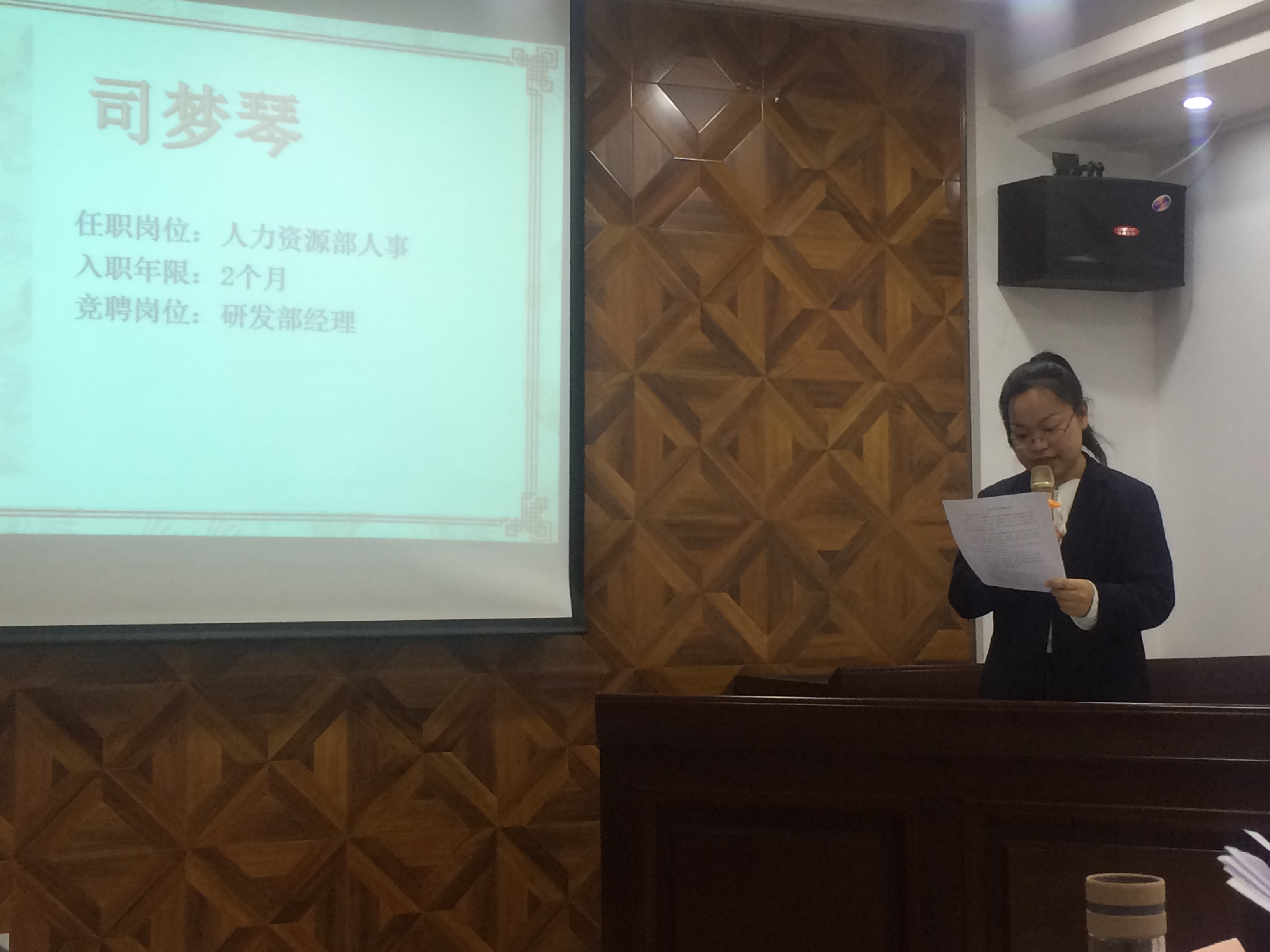 通過層層篩選,參加本次競聘者共有14人,分別競聘綜合辦公室主任、太原分公司經(jīng)理、人力資源部經(jīng)理等五個(gè)崗位,競聘者既有摸爬滾打20多年的老員工,又有入職不到半年的大學(xué)生;既有中層崗位上的管理者,又有從太原、晉中等地趕來的競聘者。競聘演講、預(yù)設(shè)提問、評委點(diǎn)評、計(jì)算機(jī)實(shí)操等環(huán)節(jié)環(huán)環(huán)緊扣,競聘者演講的精彩,評委點(diǎn)評的到位,個(gè)個(gè)精彩,人人優(yōu)秀。公司經(jīng)理程晉軍說:“本次競聘工作結(jié)束后,將有一批德才兼?zhèn)涞膯T工走上管理崗位,今后也將會(huì)有多場的競聘活動(dòng),進(jìn)一步優(yōu)化用人機(jī)制,激發(fā)員工的工作積極性!
