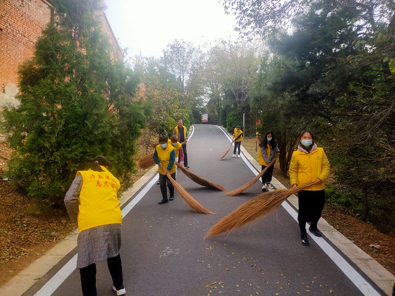 志愿者統(tǒng)一穿著志愿者黃色馬甲,帶著掃帚、撿拾器、垃圾袋等清掃工具,來到白馬寺森林公園,清掃白馬寺山頂?shù)介L(zhǎng)江支隊(duì)紀(jì)念林的步道上的落葉;顒(dòng)中,大家熱情高漲,現(xiàn)場(chǎng)清掃活動(dòng)井然有序。