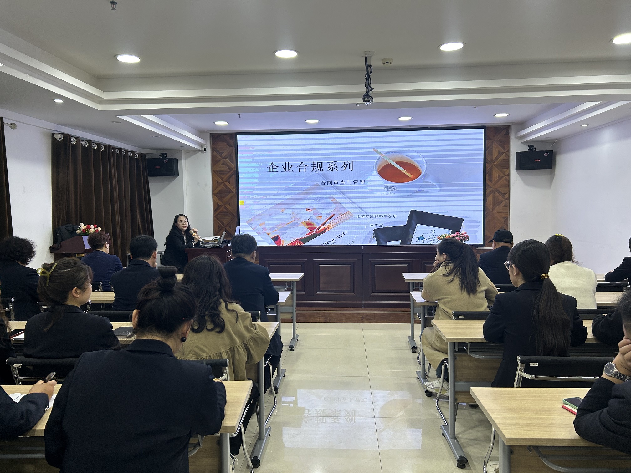 為加強企業(yè)合規(guī)管理,防控合規(guī)風險,提升公司管理人員素質(zhì),3月14日,公司在黨群活動中心舉辦專題培訓,邀請山西晉瀚律師事務(wù)所段李娜律師對企業(yè)合規(guī)系列重點對合同的審查與管理進行了解讀。公司領(lǐng)導、各部門經(jīng)理及部分管理人員30余人參加培訓。