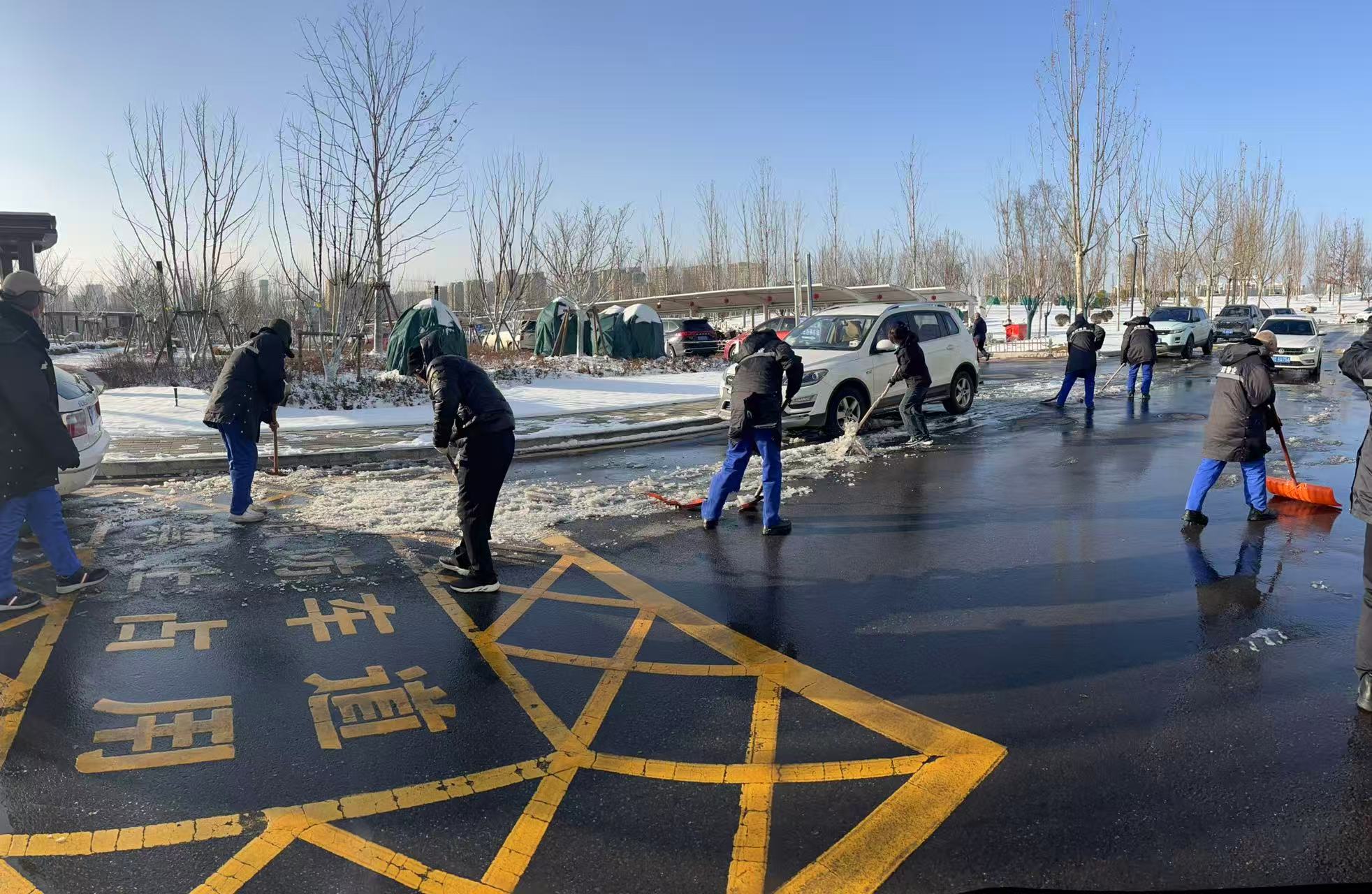 為確保道路暢通無阻,保障市民安全出行,集團(tuán)公司各基層單位服務(wù)點迅速響應(yīng),以雪為令、聞雪而動,在市政府、澤州縣政府、市醫(yī)院、市“三館”、富士康園區(qū)、陽城北留鎮(zhèn)、蘭花城、花園水系公園、兩河公園及百潔物業(yè)各服務(wù)小區(qū)等區(qū)域,開展清雪除冰專項行動,F(xiàn)場,除雪機(jī)械轟鳴作業(yè),干部職工手持鐵鍬、掃帚等工具,分工協(xié)作、默契配合,有的操作推雪機(jī)開道,有的揮動鐵鍬鏟除堅冰,有的用掃帚清理余雪……寒風(fēng)凜冽中,處處可見熱火朝天的勞動場景。